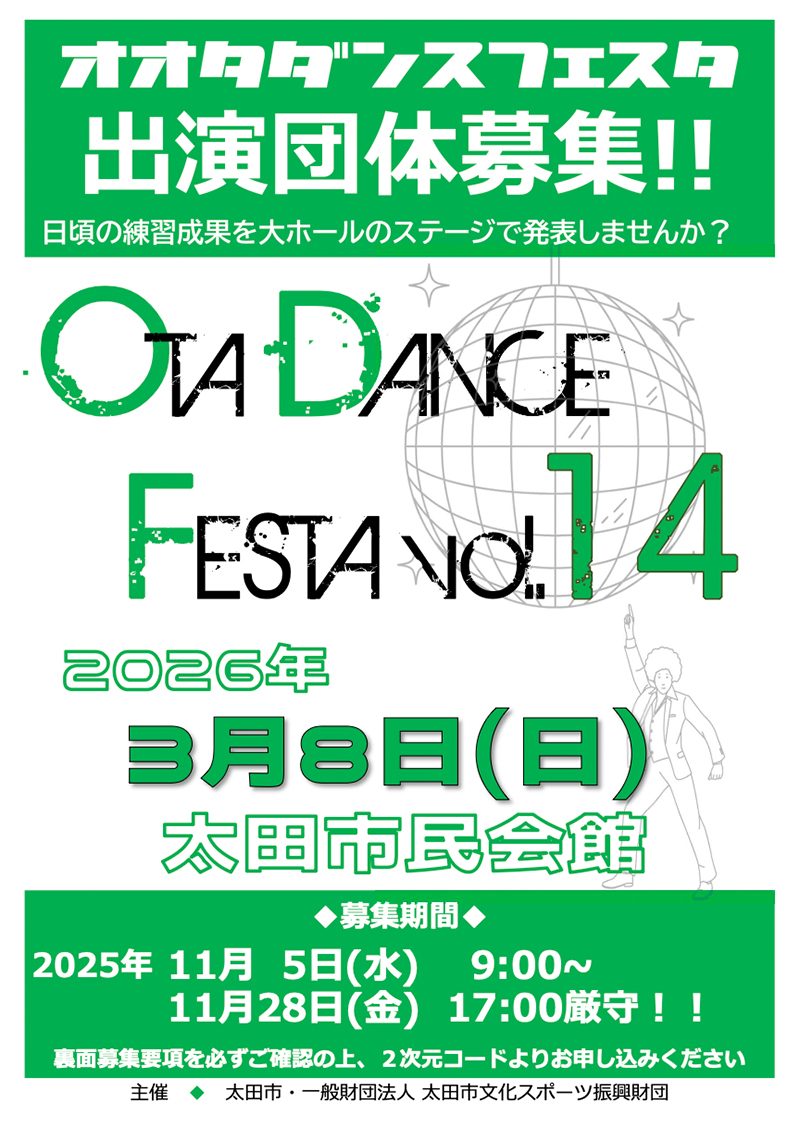 ★ダンス活動をしている2人以上で結成されているグループ ★1人の出演者が複数の団体に出演することはできません ★メンバーの年齢構成、ダンスのジャンルは問いません ★披露するダンス動画を撮影したデータをDVDもしくはメールにてご提出いただきます ★リハーサルは公演当日に行います※詳細は出演決定後にご連絡いたします ★ステージ面はリノリウム仕様のため床面を損傷するような内容・演出はできません |